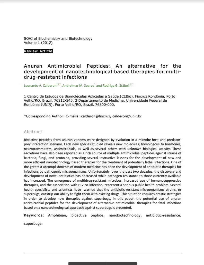 Bioactive peptides from anuran venoms were designed by evolution in a microbe‐host and predator‐ prey interaction scenario. These secretions have been reported as a rich source of multiple antimicrobial peptides against strains of bacteria, fungi, and protozoa, providing several instructive lessons for the development of new and more efficient nanotechnology based therapies for the treatment of potentially lethal infections.